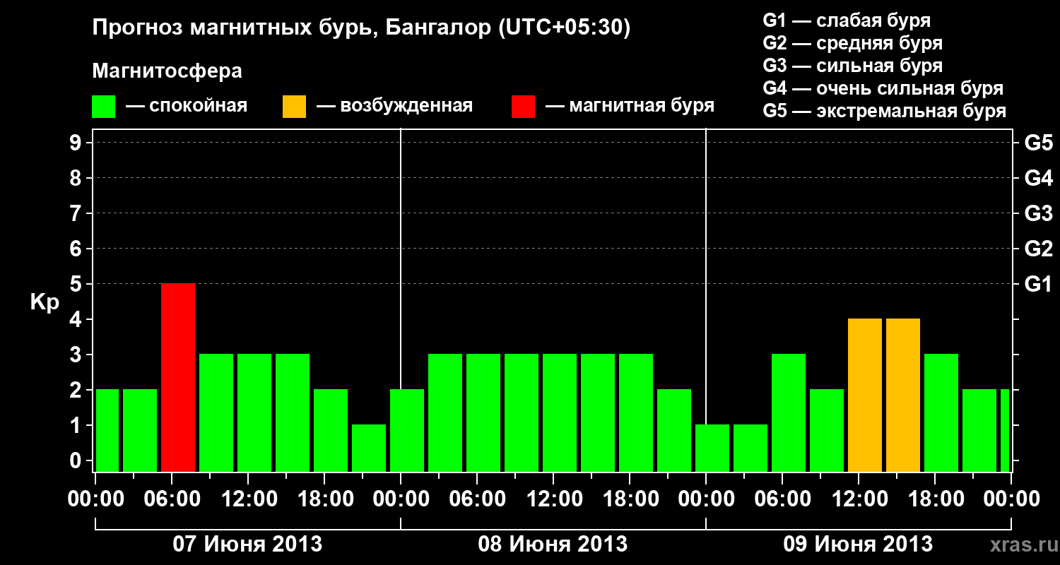 Прогноз магнитных бурь в Бангалоре — 7 июня 2013 года
