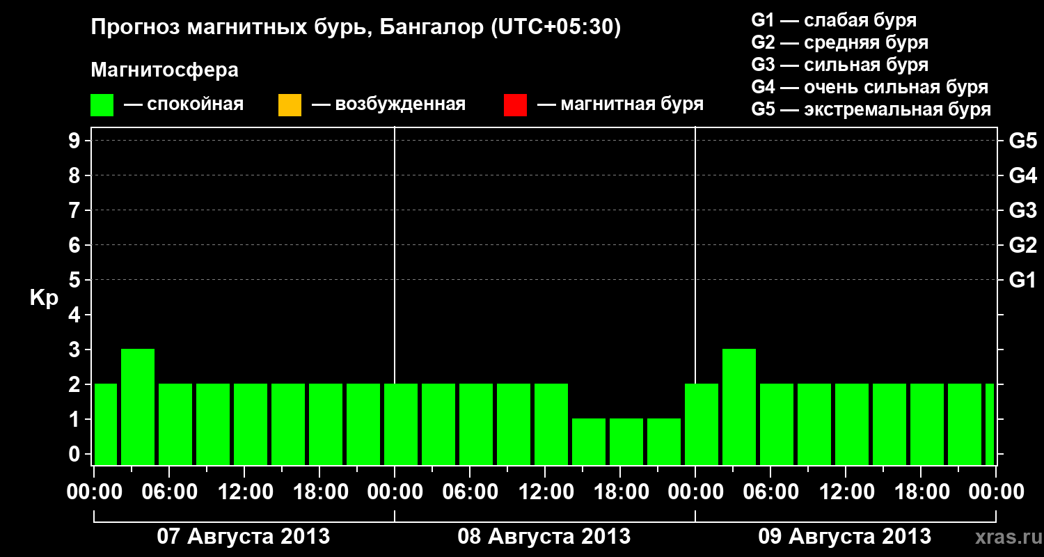 Прогноз магнитных бурь в Бангалоре — 7 августа 2013 года