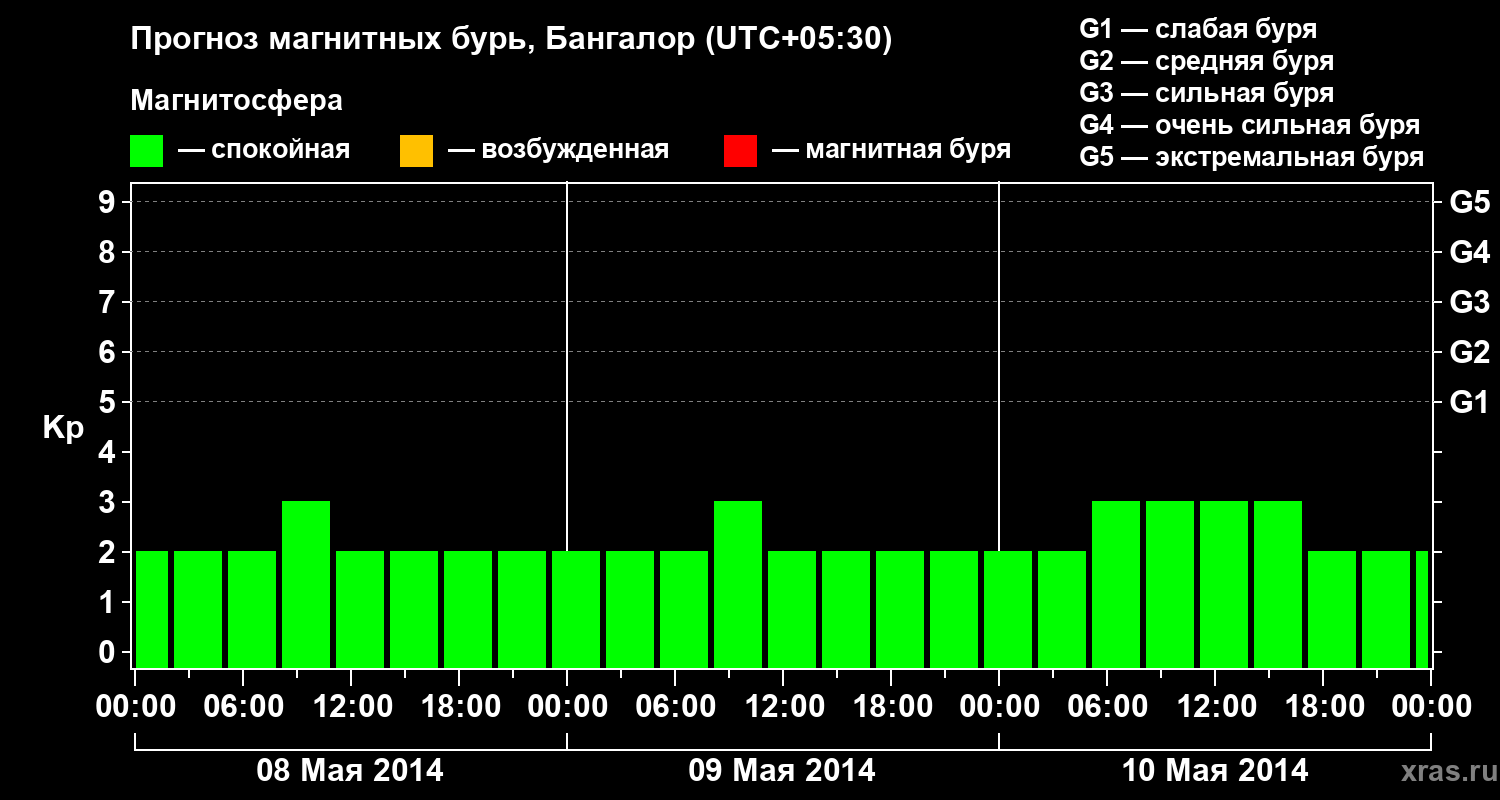 Прогноз магнитных бурь в Бангалоре — 8 мая 2014 года