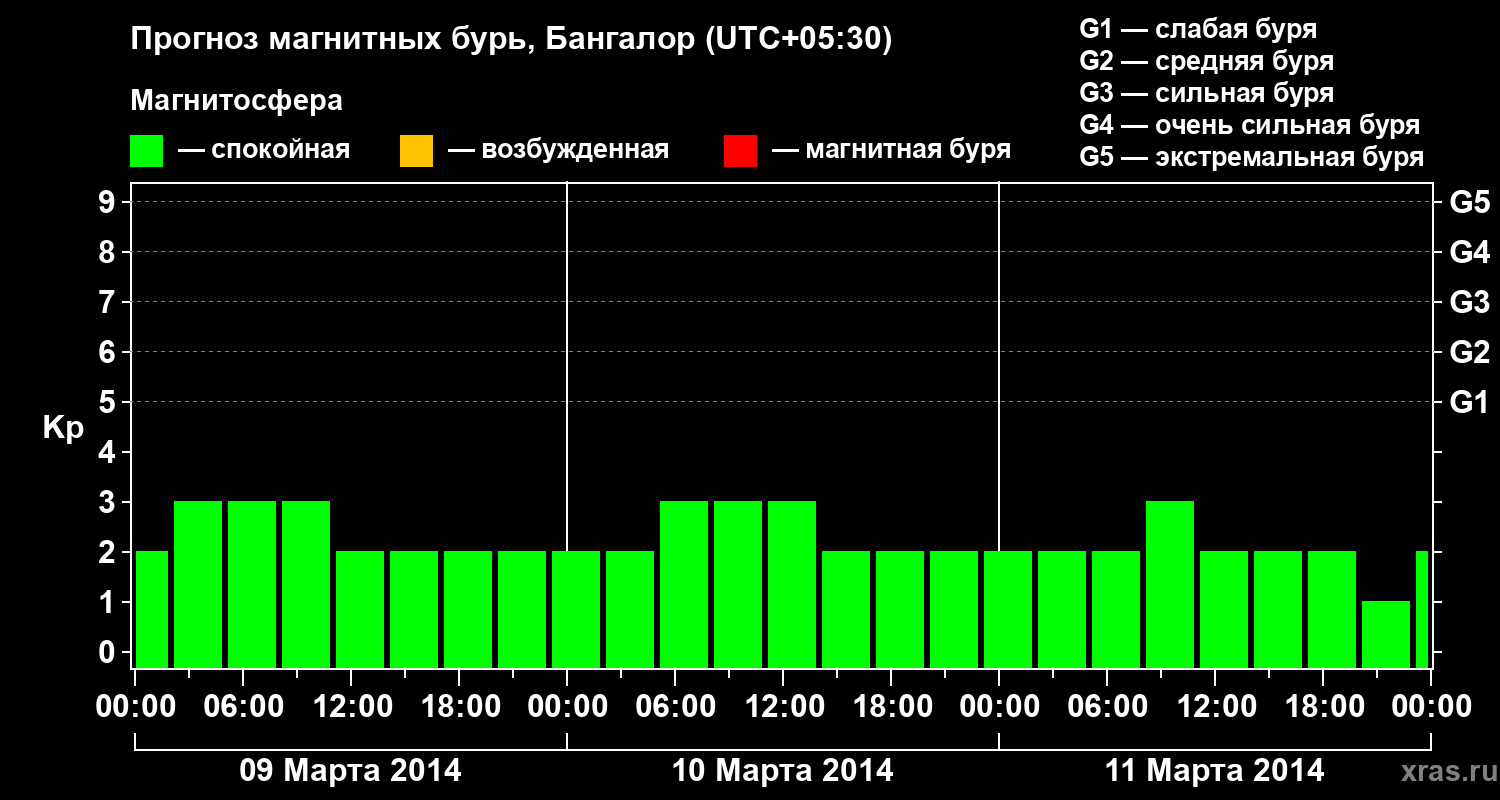 Прогноз магнитных бурь в Бангалоре — 9 марта 2014 года