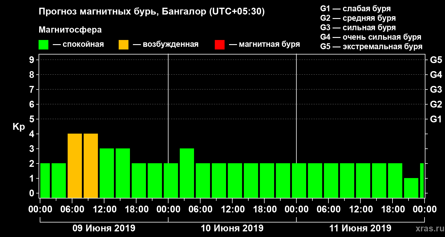 Прогноз магнитных бурь в Бангалоре — 9 июня 2019 года