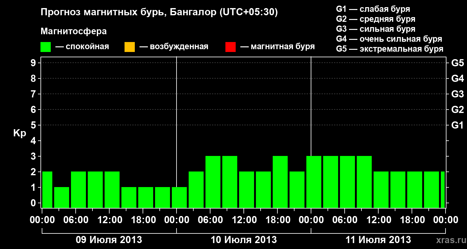 Прогноз магнитных бурь в Бангалоре — 9 июля 2013 года