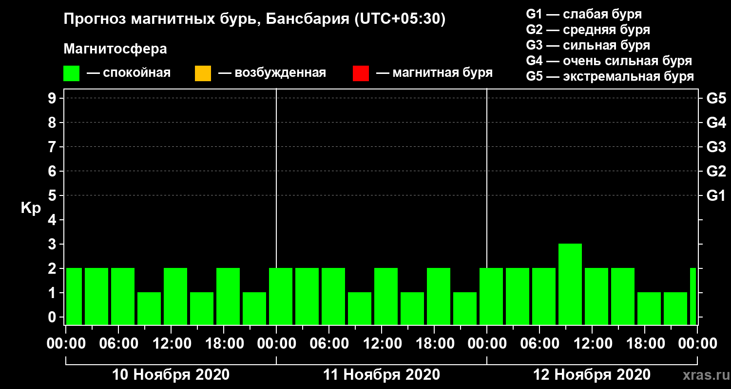 Прогноз магнитных бурь в Бансбарии — 10 ноября 2020 года