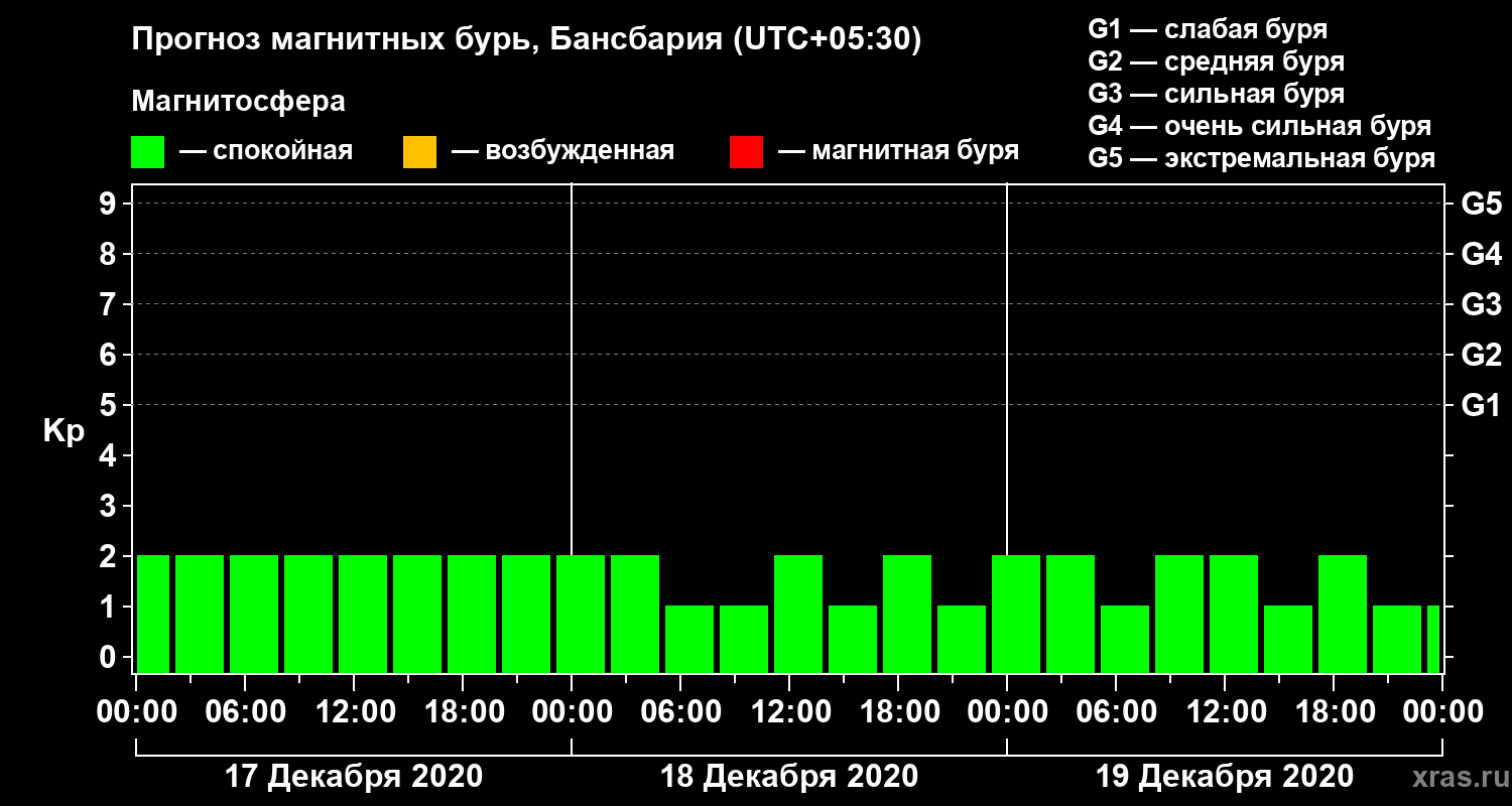 Прогноз магнитных бурь в Бансбарии на 17 декабря 2020 года