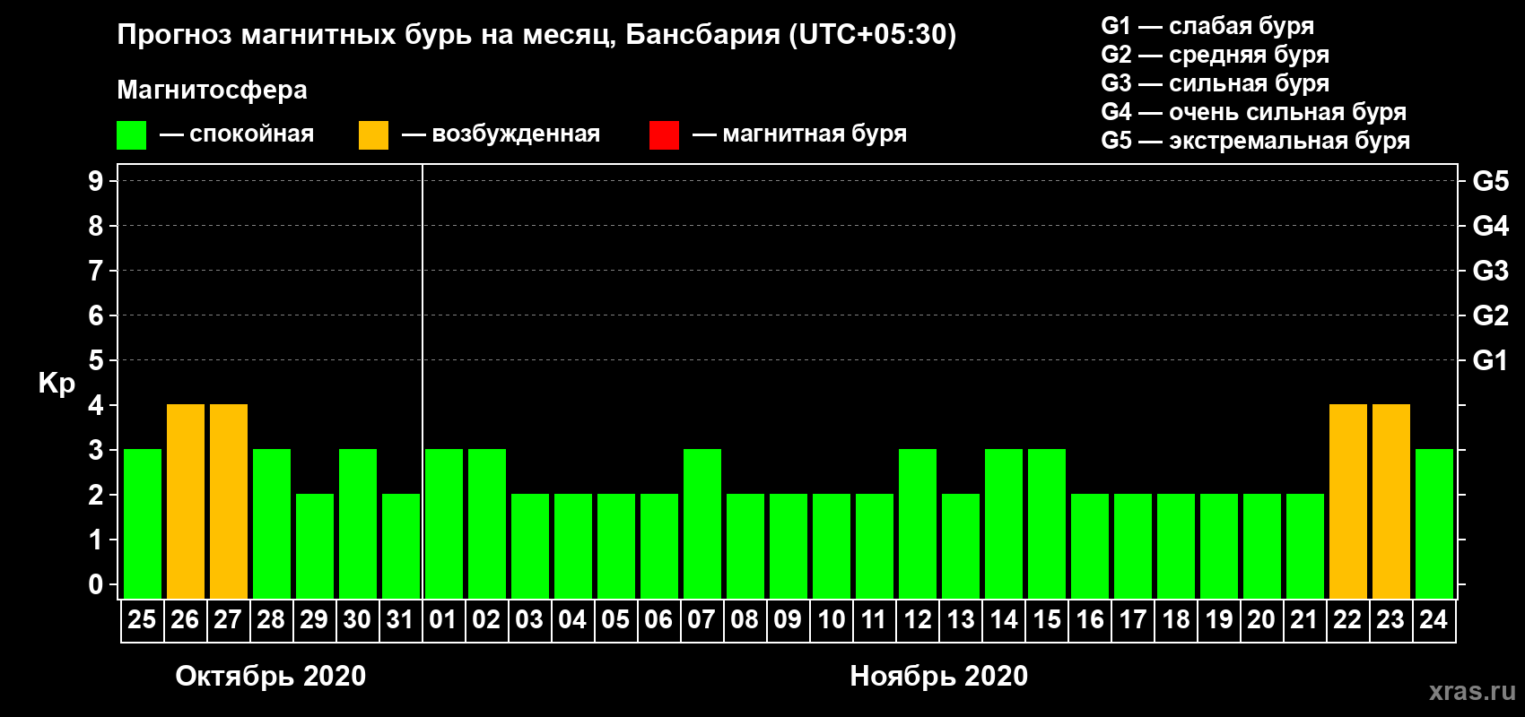 Прогноз магнитных бурь в Бансбарии — 25 октября 2020 года
