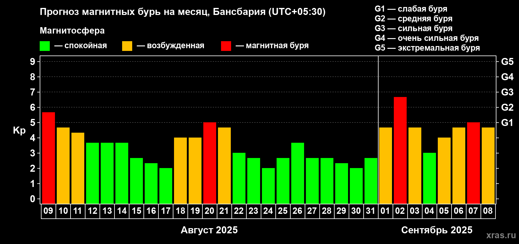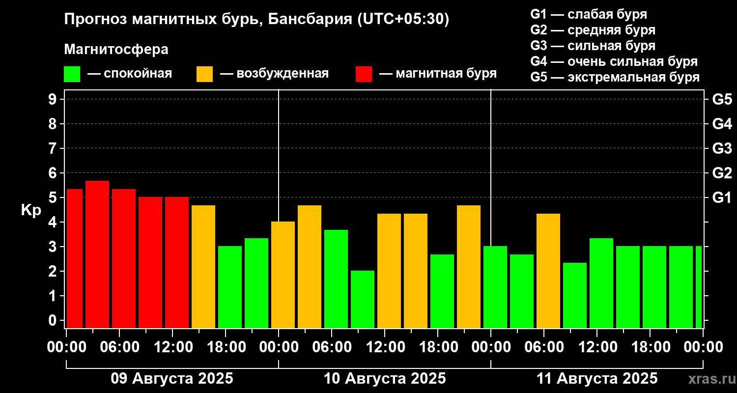 Прогноз магнитных бурь в Бансбарии — 9 августа 2025 года