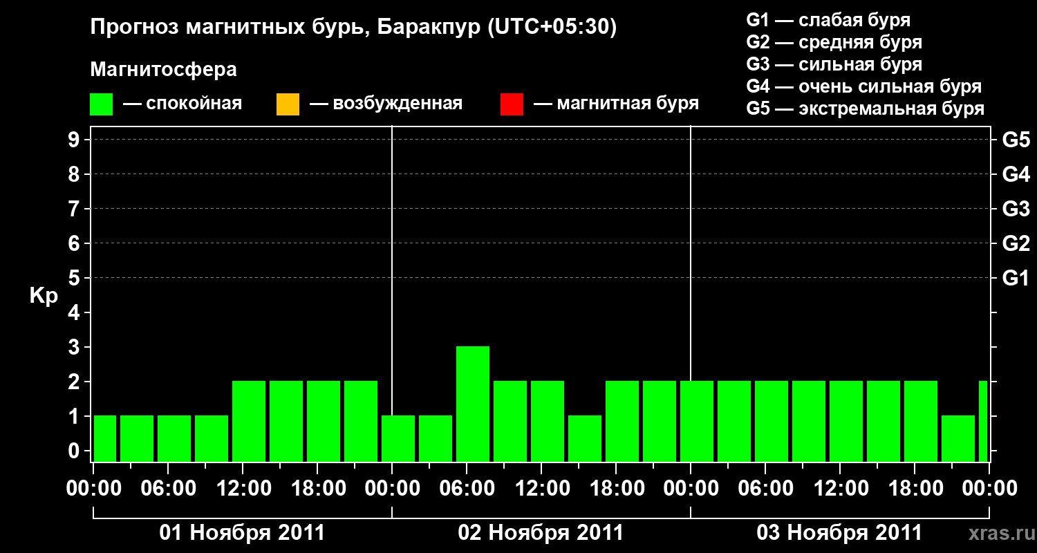 Прогноз магнитных бурь в Баракпуре — 1 ноября 2011 года