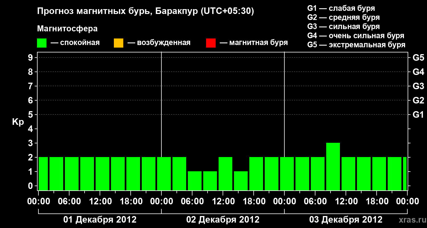 Прогноз магнитных бурь в Баракпуре — 1 декабря 2012 года