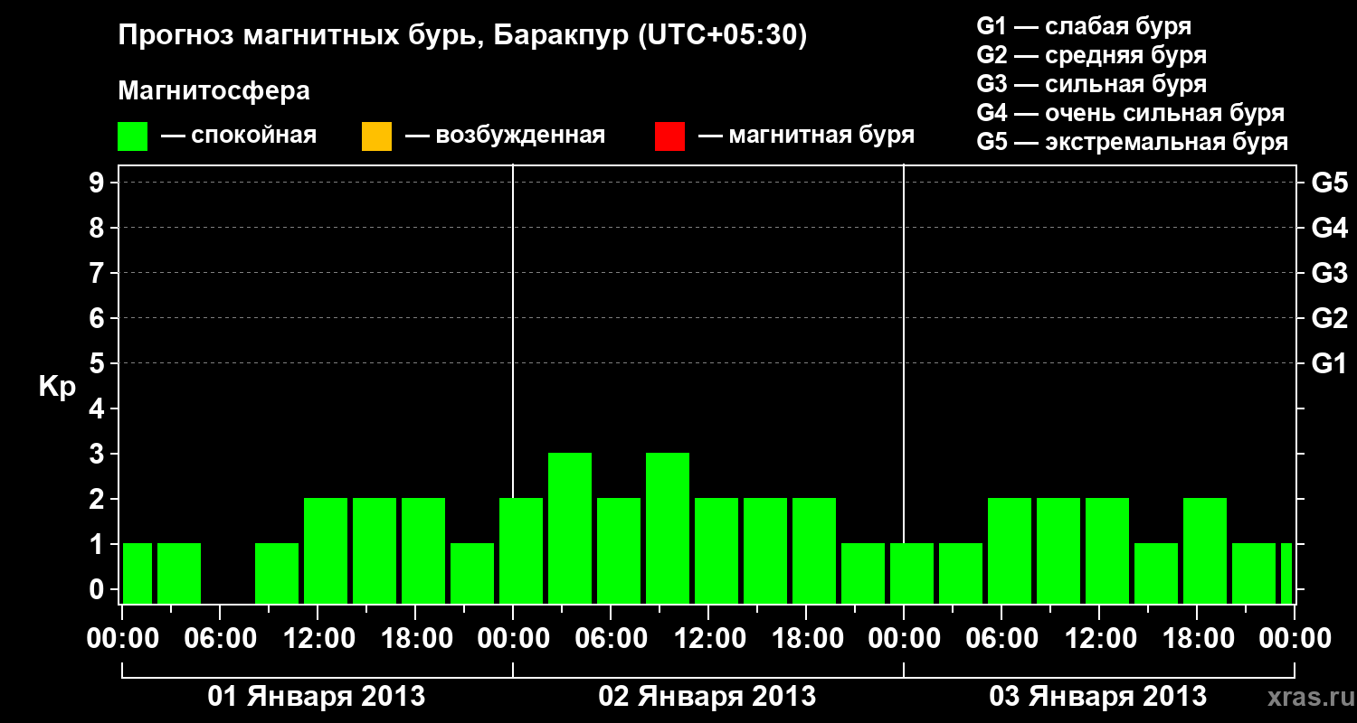 Прогноз магнитных бурь в Баракпуре — 1 января 2013 года