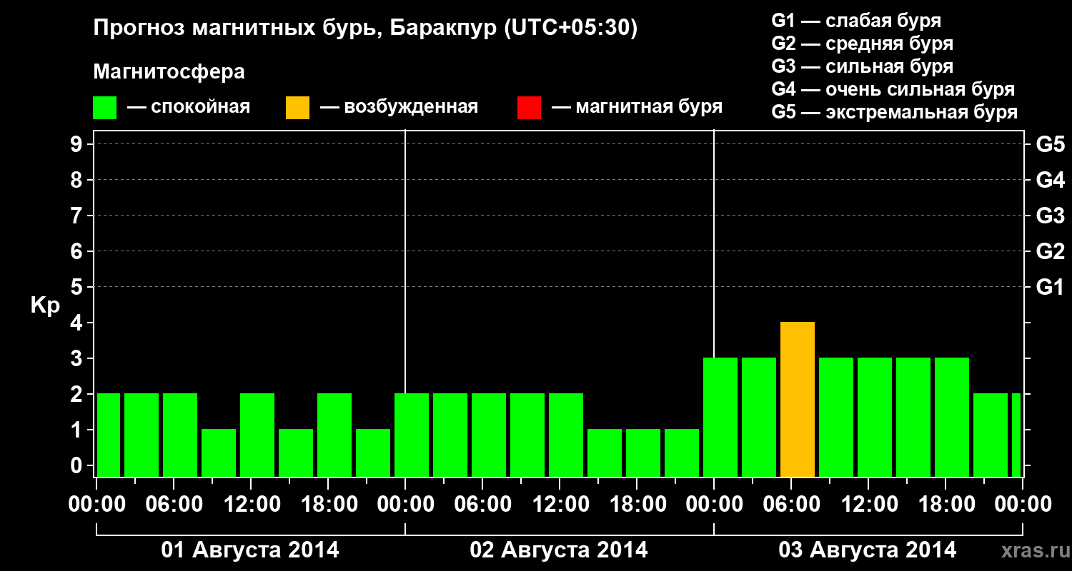 Прогноз магнитных бурь в Баракпуре — 1 августа 2014 года