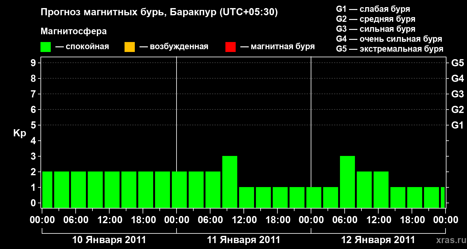 Прогноз магнитных бурь в Баракпуре — 10 января 2011 года