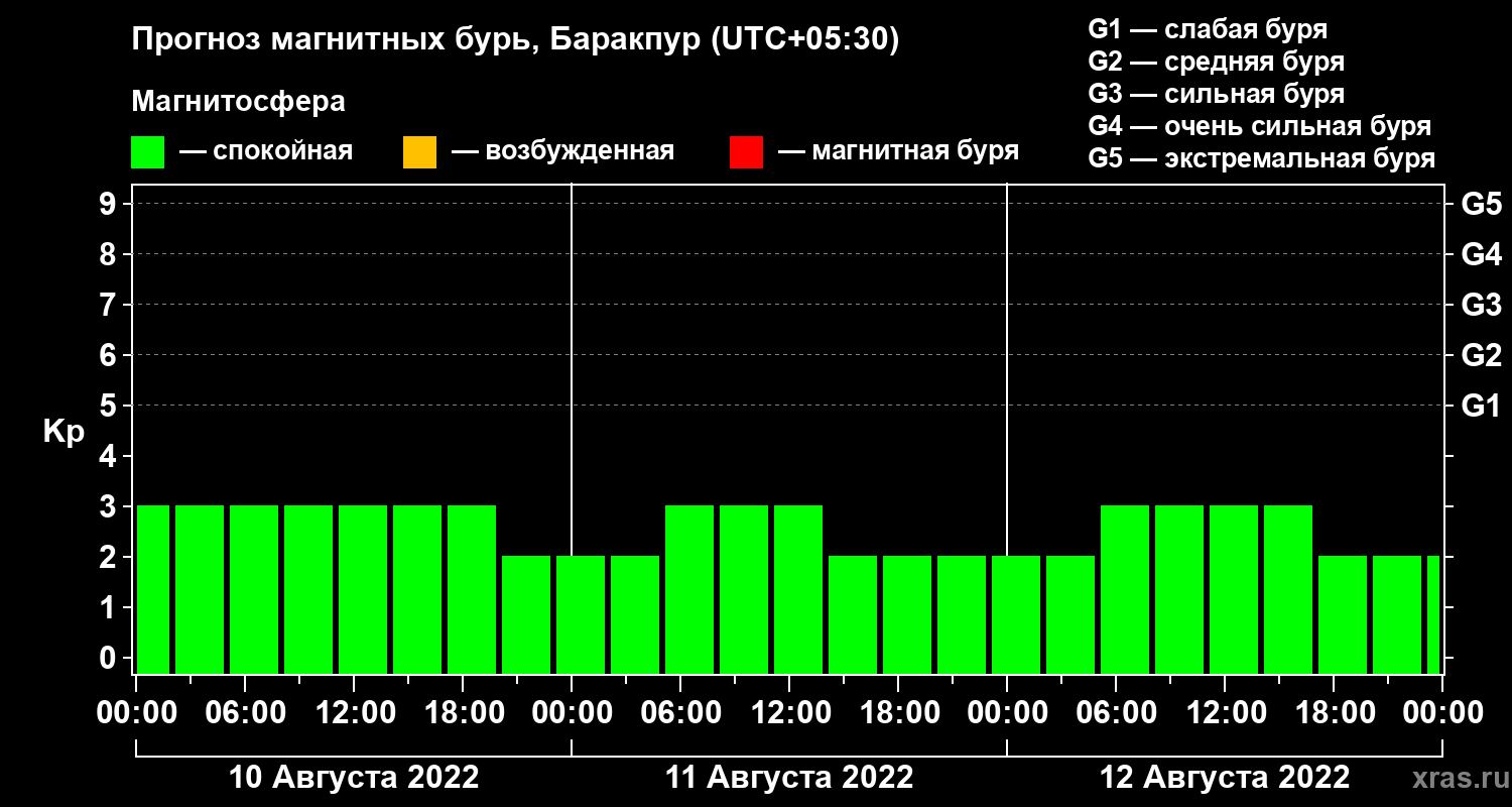 Прогноз магнитных бурь в Баракпуре — 10 августа 2022 года