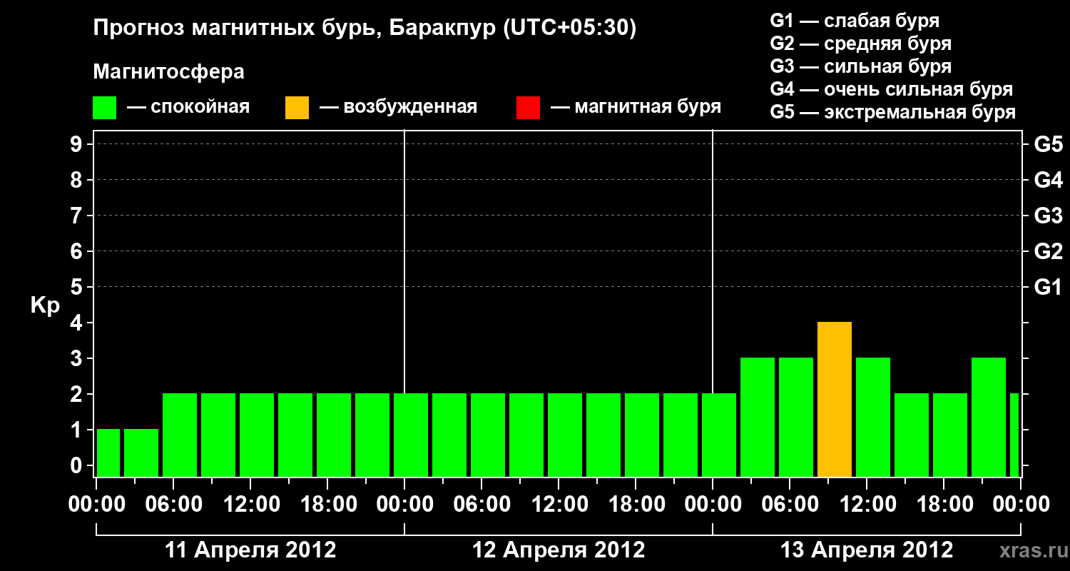 Прогноз магнитных бурь в Баракпуре — 11 апреля 2012 года