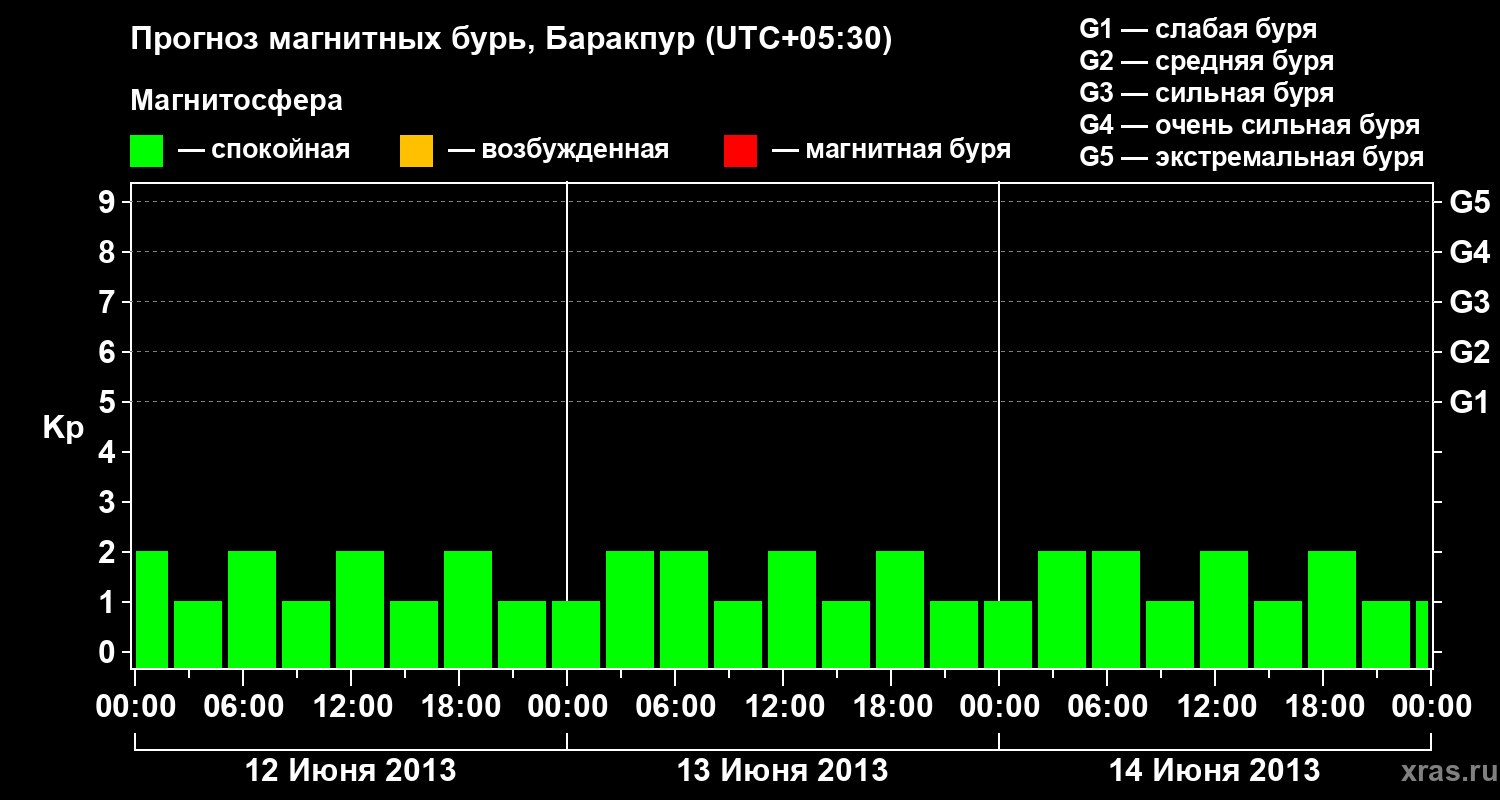Прогноз магнитных бурь в Баракпуре — 12 июня 2013 года
