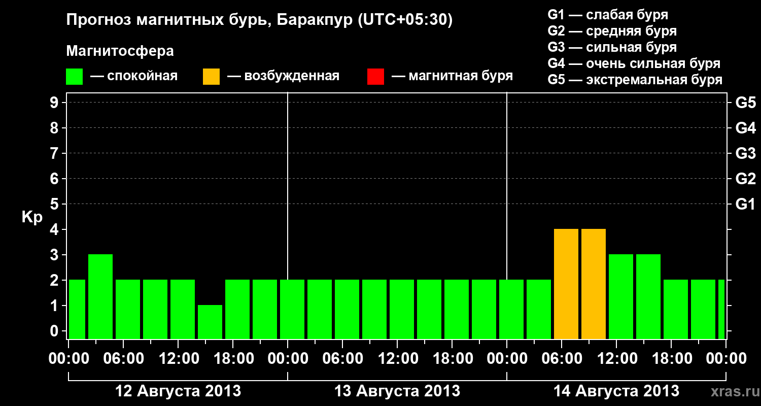 Прогноз магнитных бурь в Баракпуре — 12 августа 2013 года