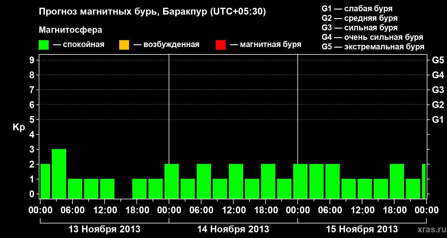 Прогноз магнитных бурь в Баракпуре — 13 ноября 2013 года