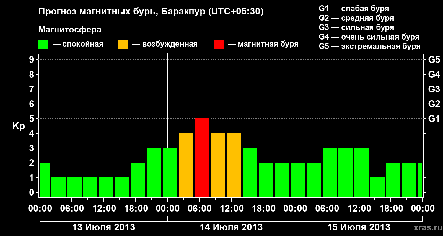 Прогноз магнитных бурь в Баракпуре — 13 июля 2013 года