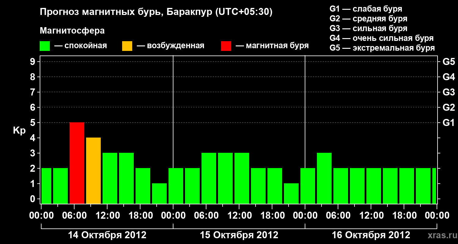 Прогноз магнитных бурь в Баракпуре — 14 октября 2012 года