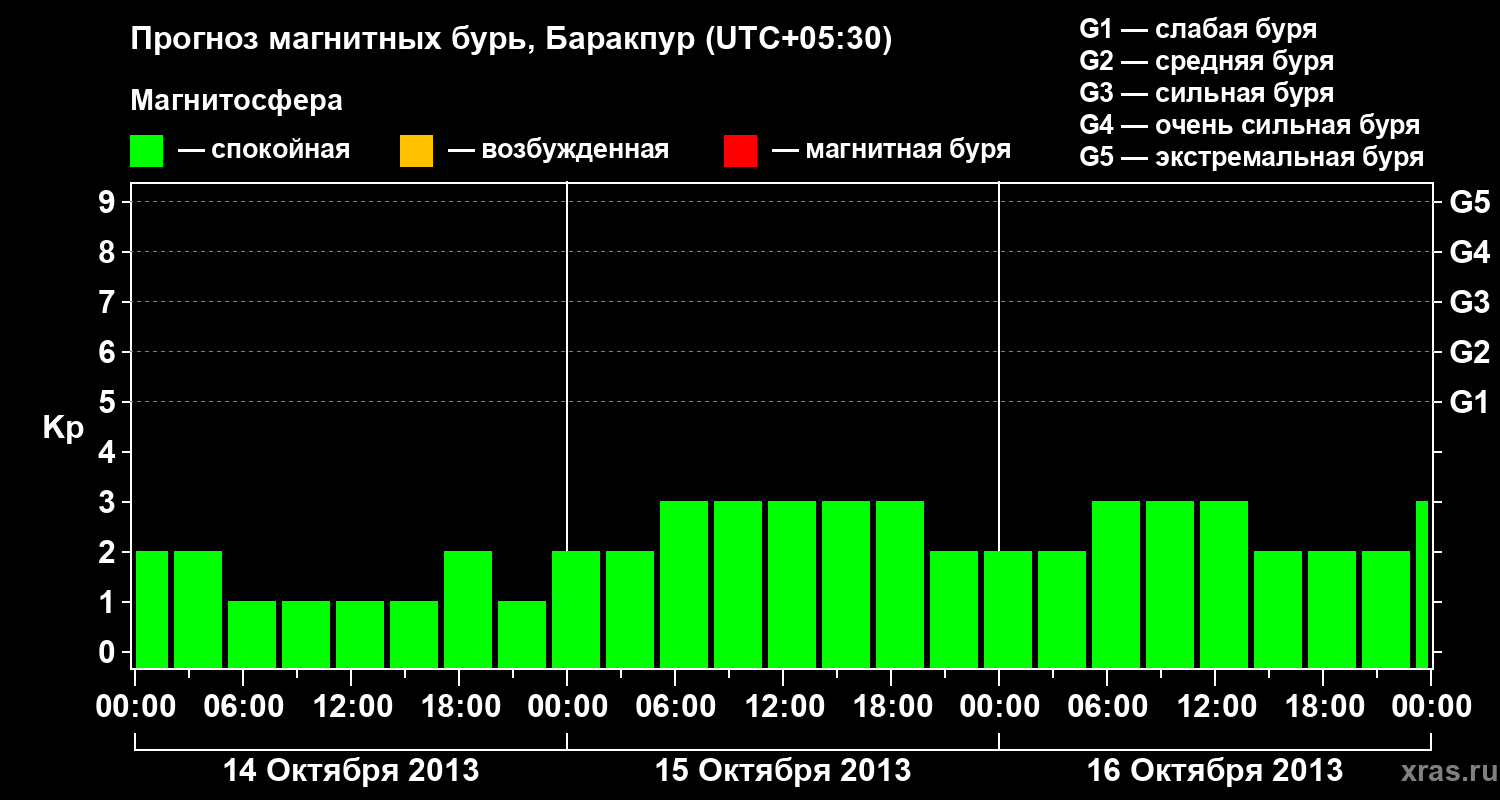 Прогноз магнитных бурь в Баракпуре — 14 октября 2013 года