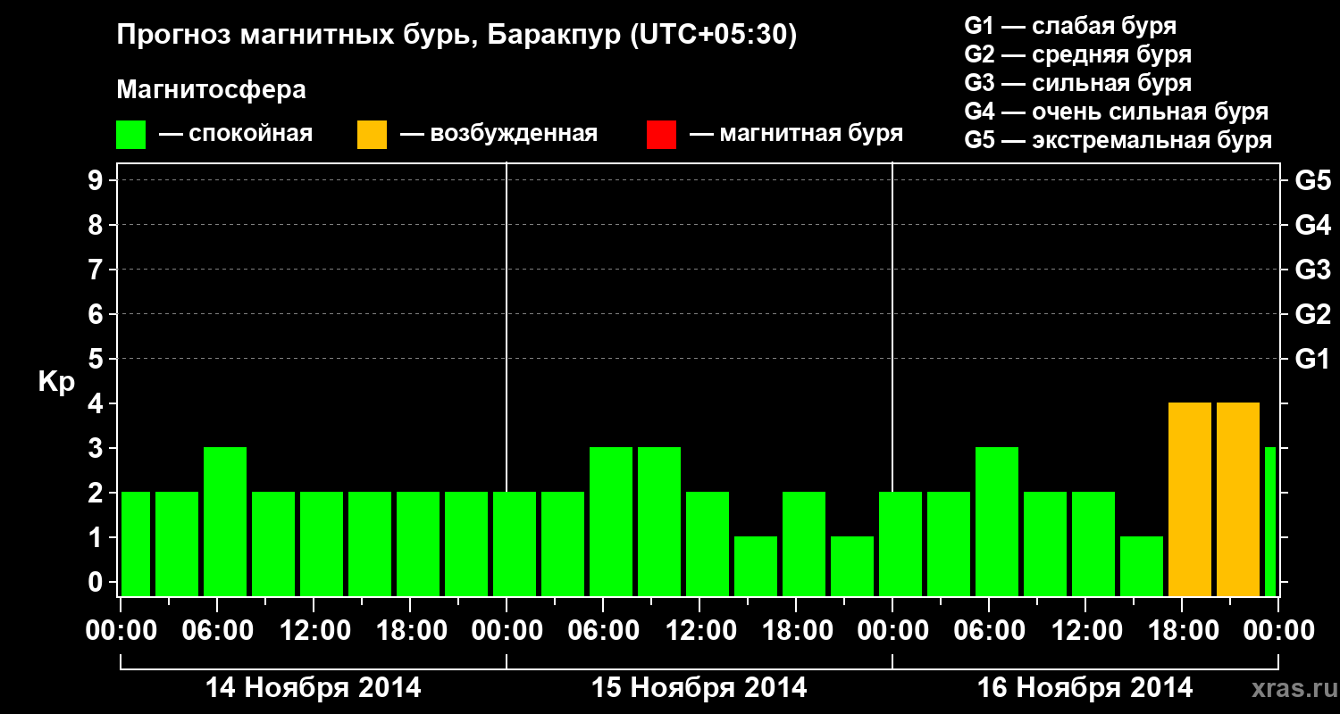 Прогноз магнитных бурь в Баракпуре — 14 ноября 2014 года