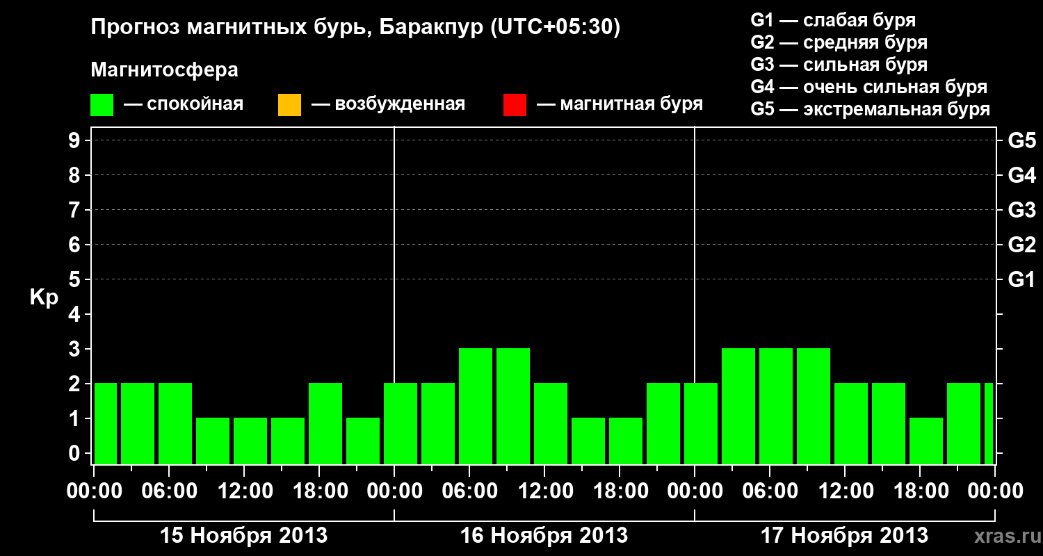 Прогноз магнитных бурь в Баракпуре — 15 ноября 2013 года