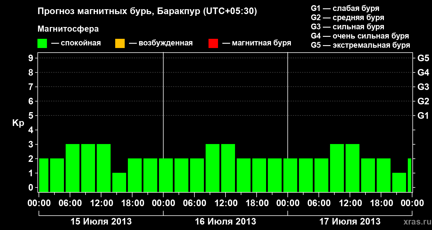 Прогноз магнитных бурь в Баракпуре — 15 июля 2013 года