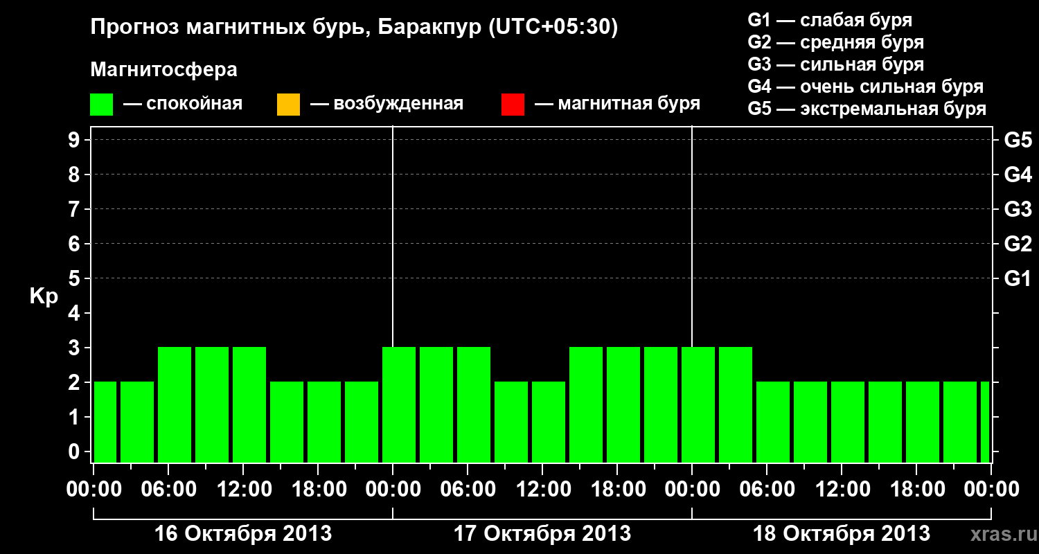 Прогноз магнитных бурь в Баракпуре — 16 октября 2013 года