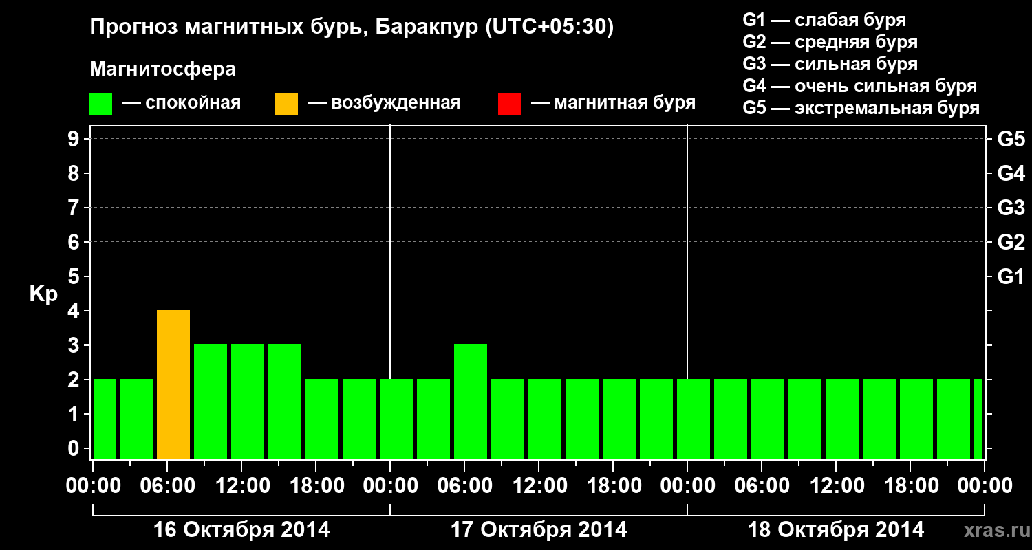 Прогноз магнитных бурь в Баракпуре — 16 октября 2014 года