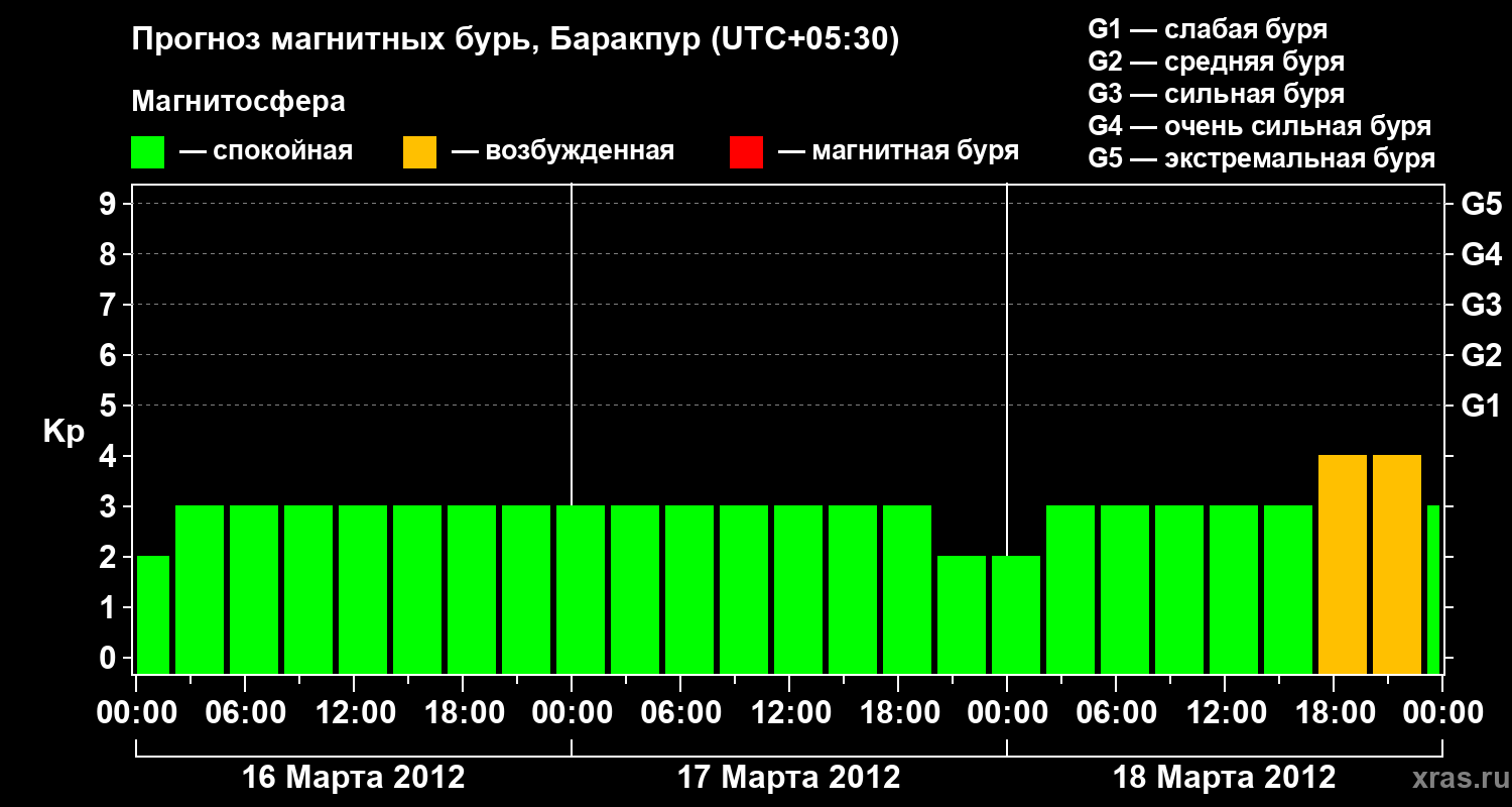 Прогноз магнитных бурь в Баракпуре — 16 марта 2012 года