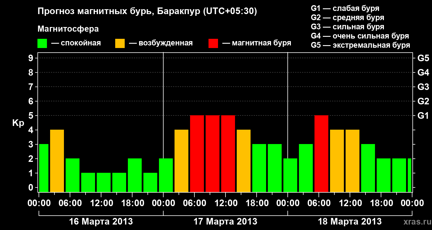 Прогноз магнитных бурь в Баракпуре — 16 марта 2013 года