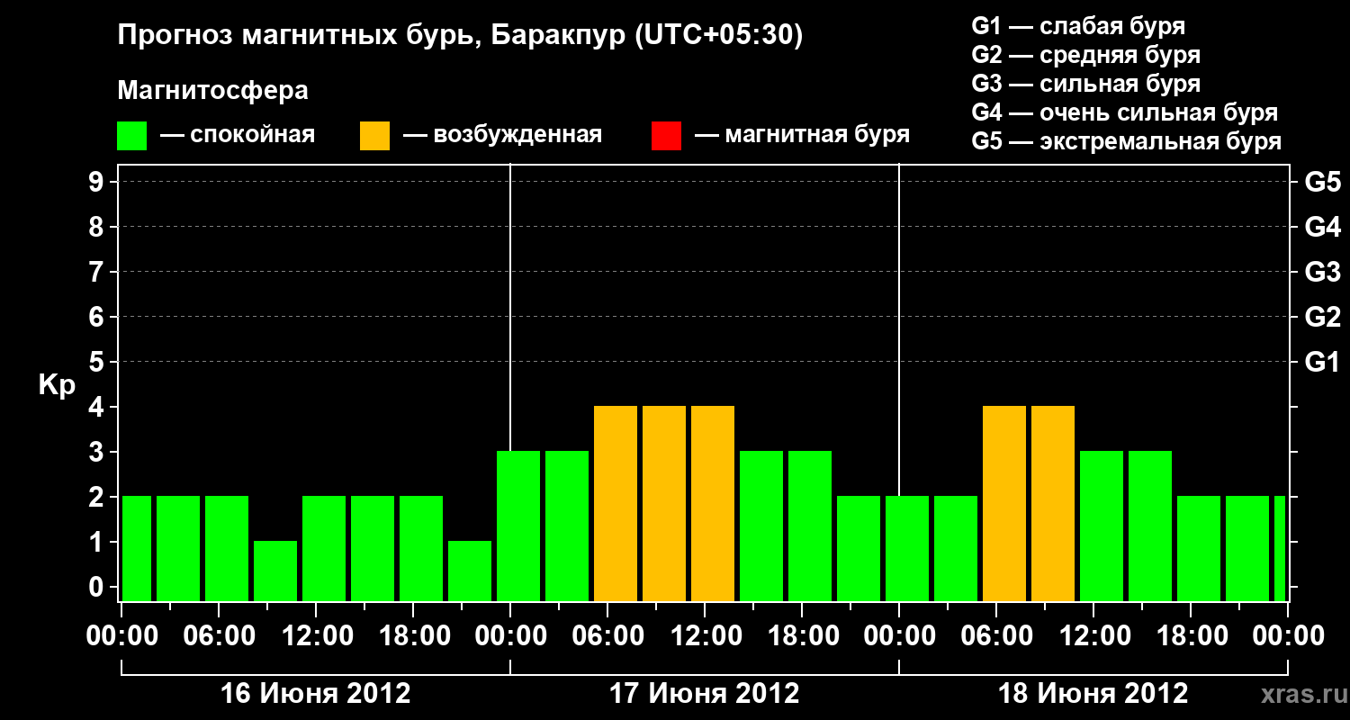 Прогноз магнитных бурь в Баракпуре — 16 июня 2012 года