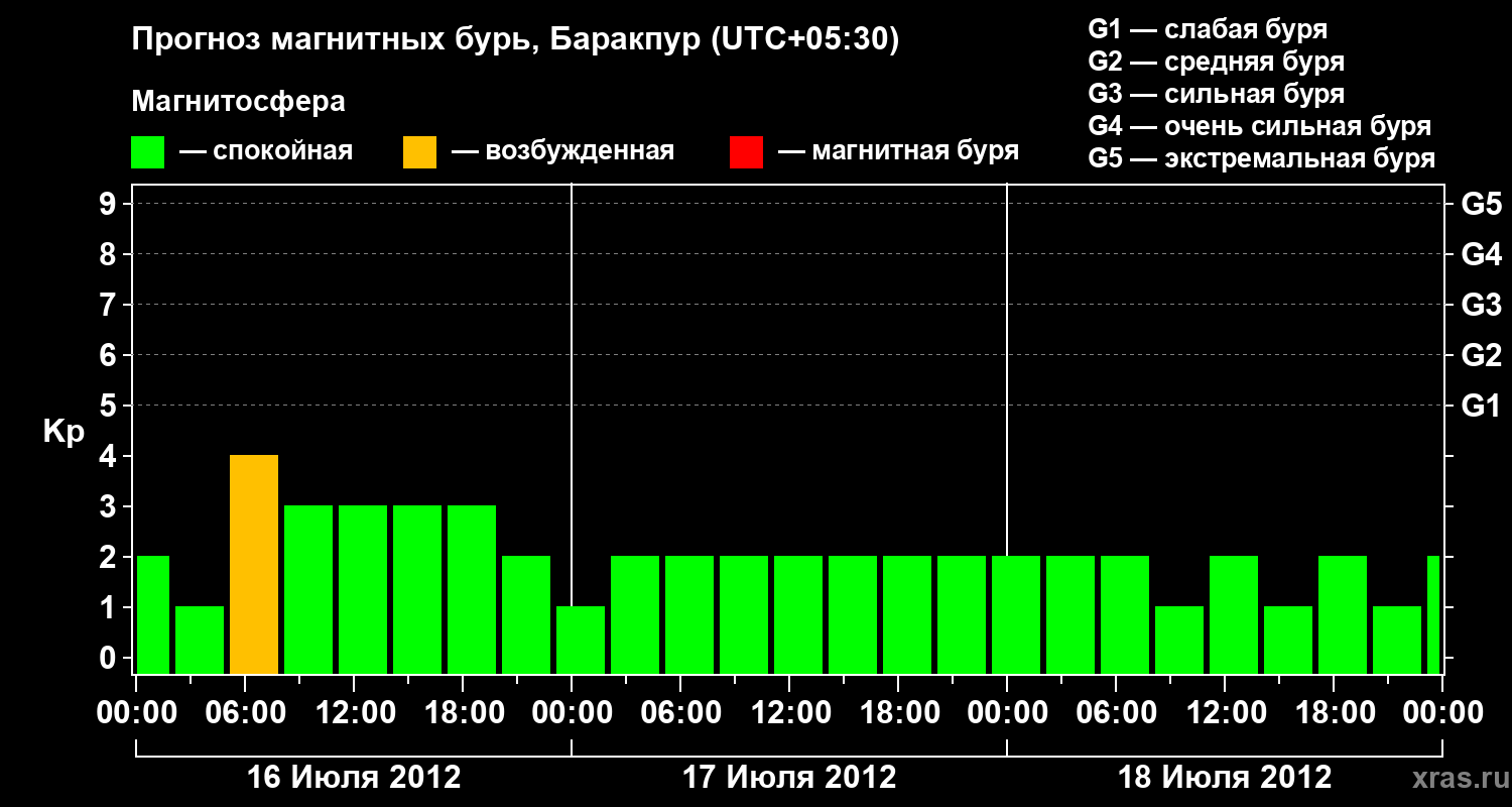 Прогноз магнитных бурь в Баракпуре — 16 июля 2012 года