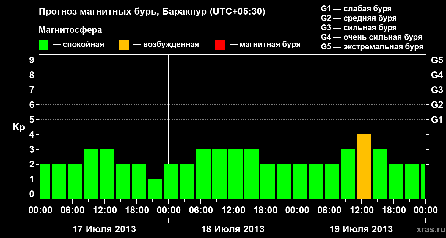 Прогноз магнитных бурь в Баракпуре — 17 июля 2013 года