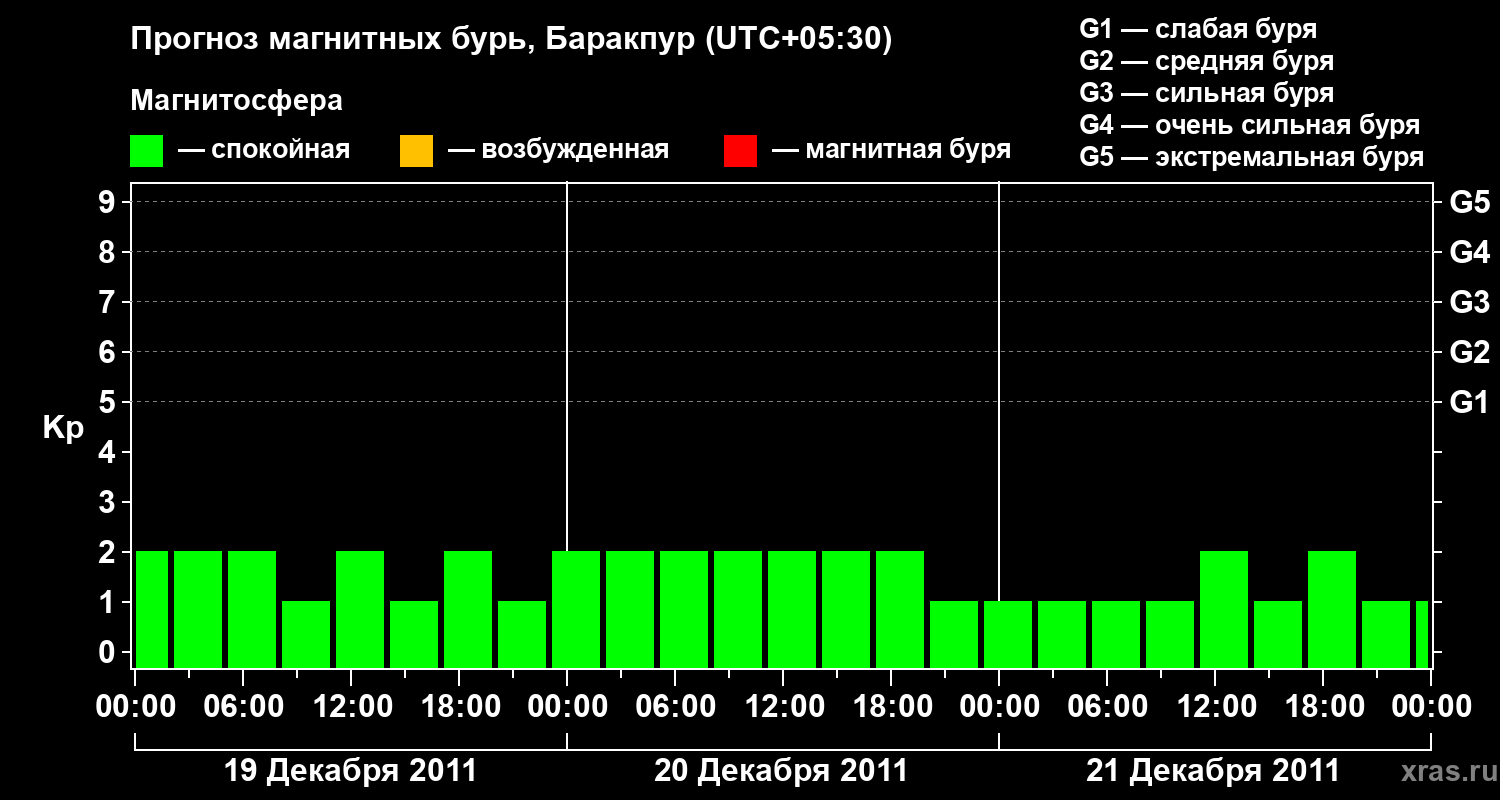 Прогноз магнитных бурь в Баракпуре — 19 декабря 2011 года