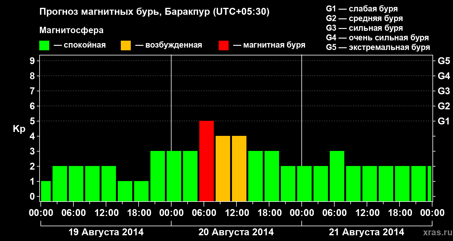 Прогноз магнитных бурь в Баракпуре — 19 августа 2014 года