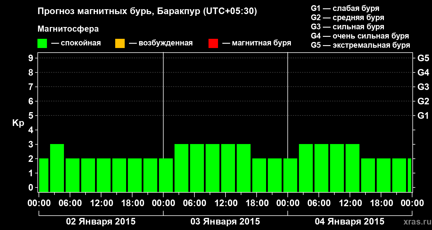 Прогноз магнитных бурь в Баракпуре — 2 января 2015 года