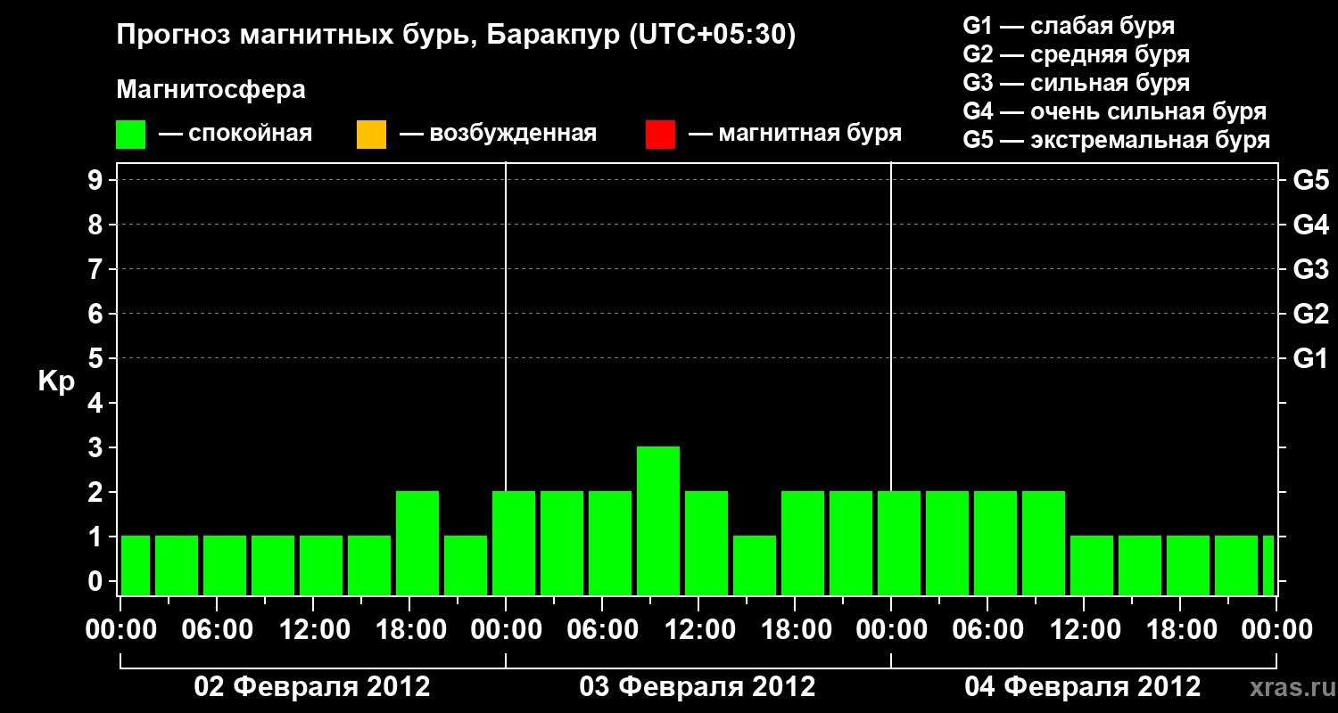 Прогноз магнитных бурь в Баракпуре — 2 февраля 2012 года