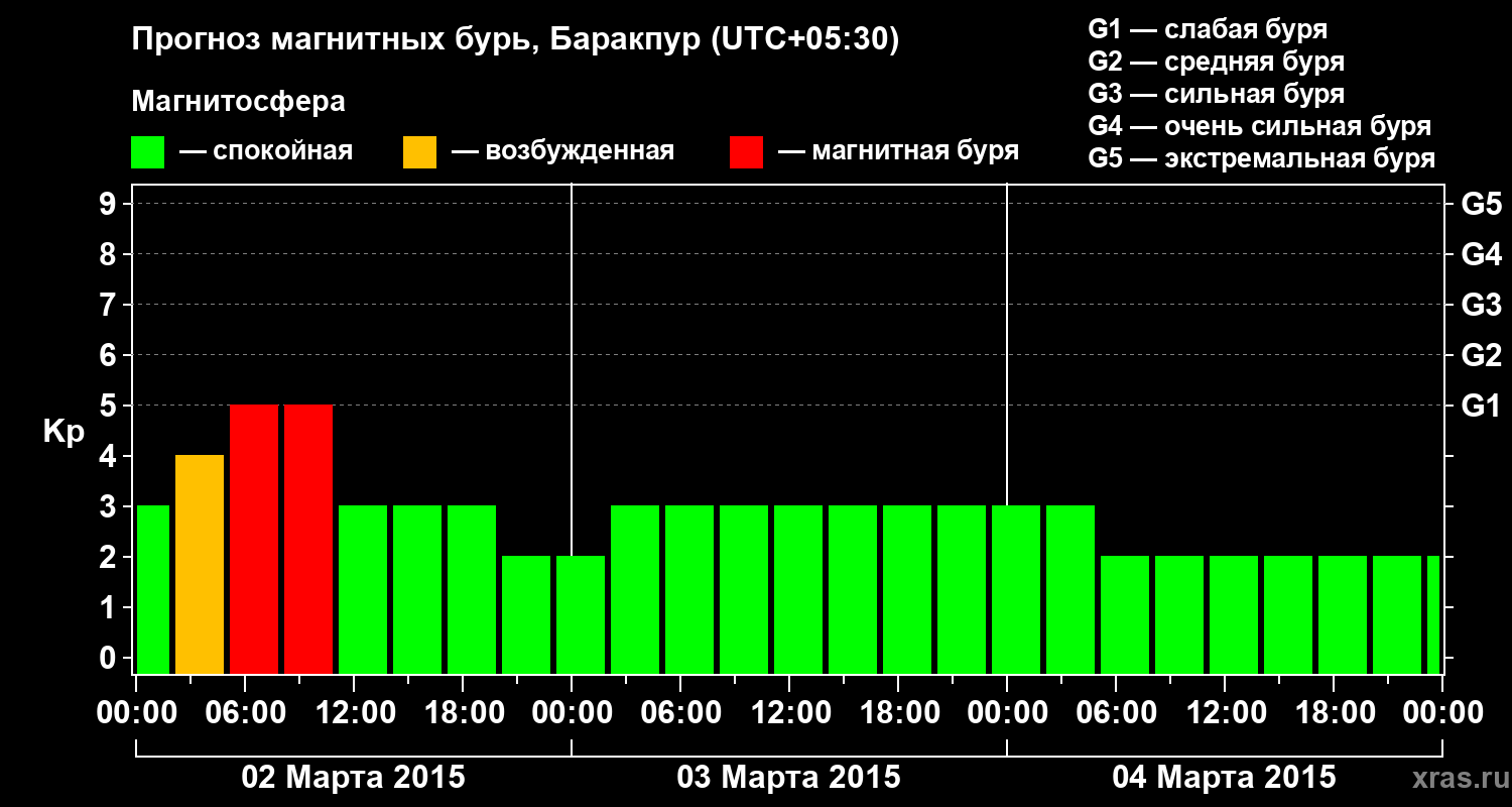 Прогноз магнитных бурь в Баракпуре — 2 марта 2015 года