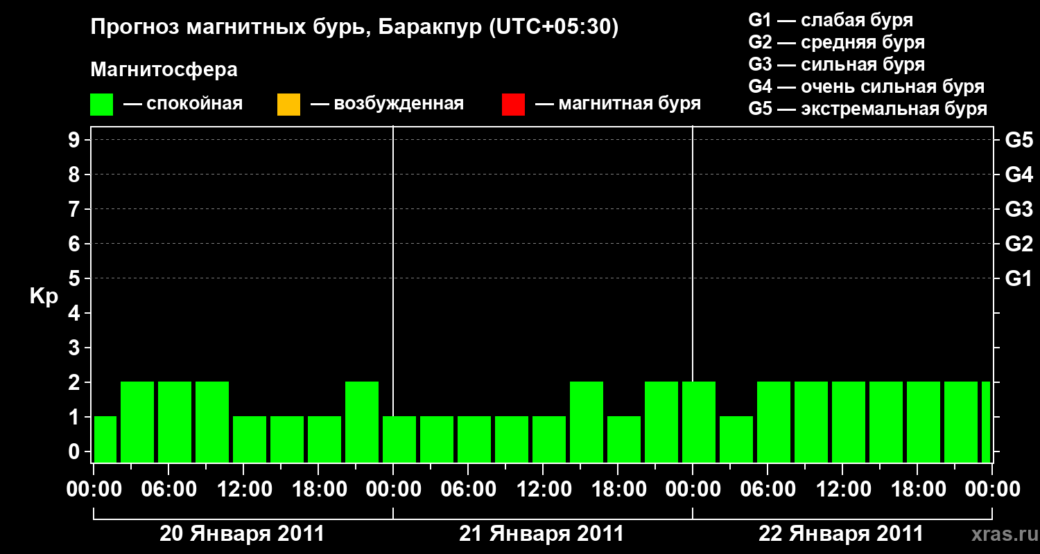 Прогноз магнитных бурь в Баракпуре — 20 января 2011 года