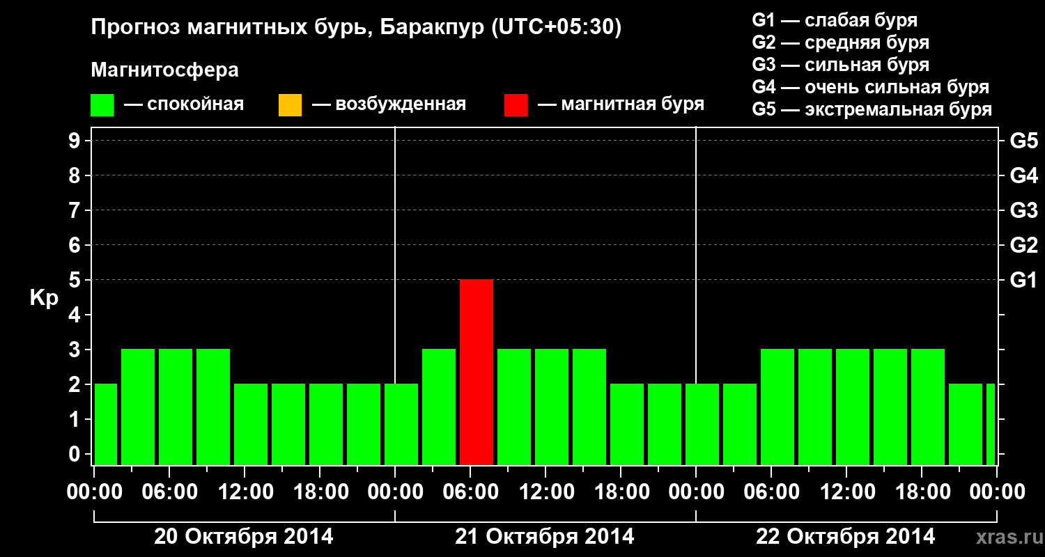 Прогноз магнитных бурь в Баракпуре — 20 октября 2014 года