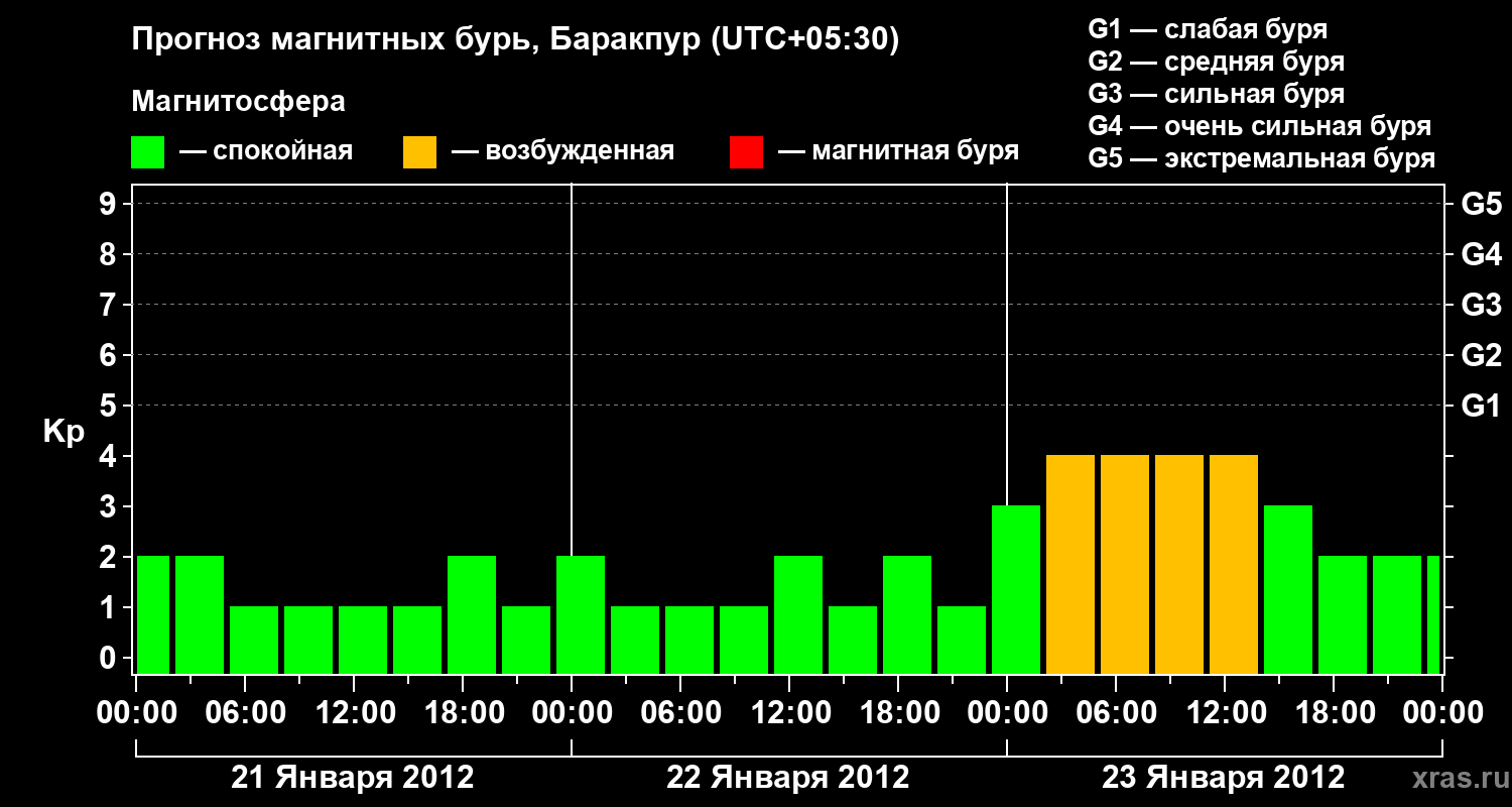 Прогноз магнитных бурь в Баракпуре — 21 января 2012 года