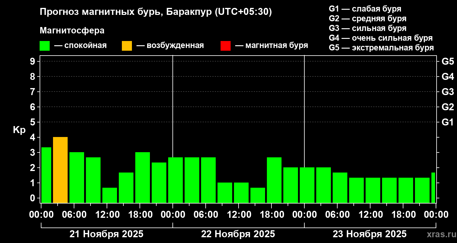 Прогноз магнитных бурь в Баракпуре — 21 ноября 2025 года