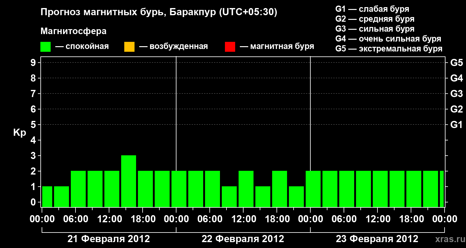 Прогноз магнитных бурь в Баракпуре — 21 февраля 2012 года