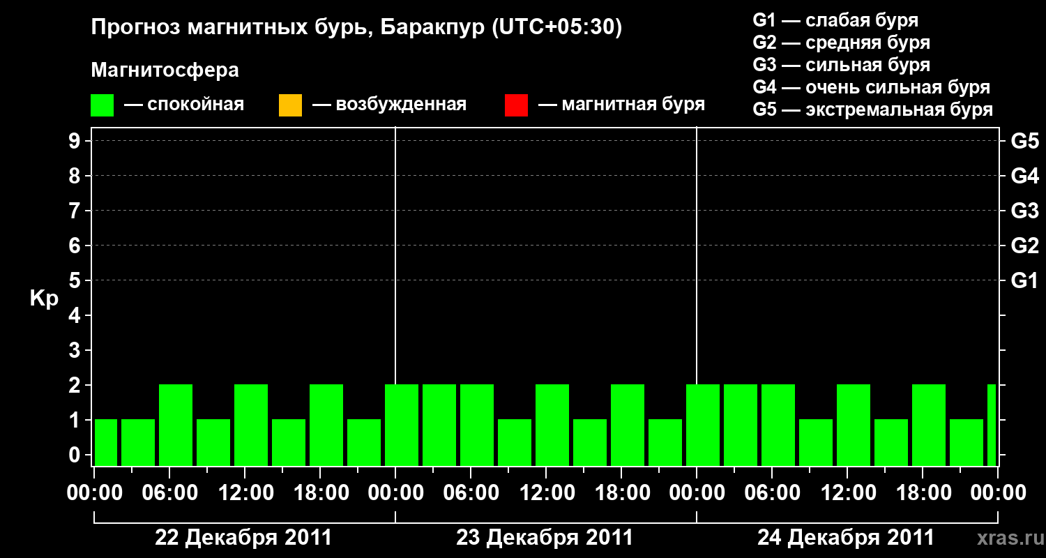Прогноз магнитных бурь в Баракпуре — 22 декабря 2011 года