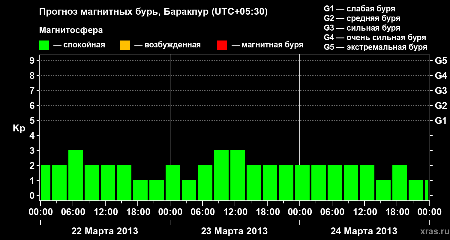 Прогноз магнитных бурь в Баракпуре — 22 марта 2013 года