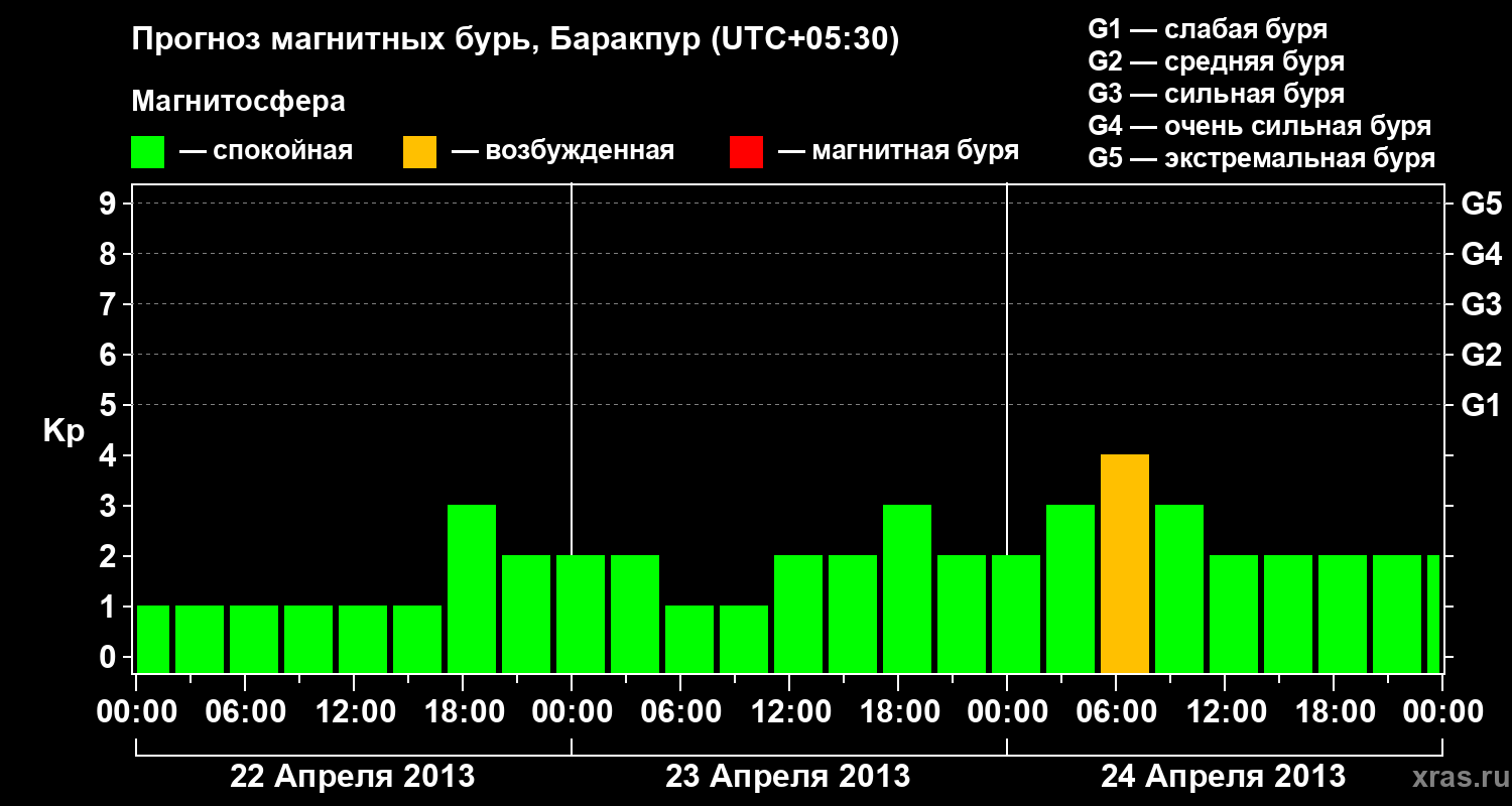Прогноз магнитных бурь в Баракпуре — 22 апреля 2013 года