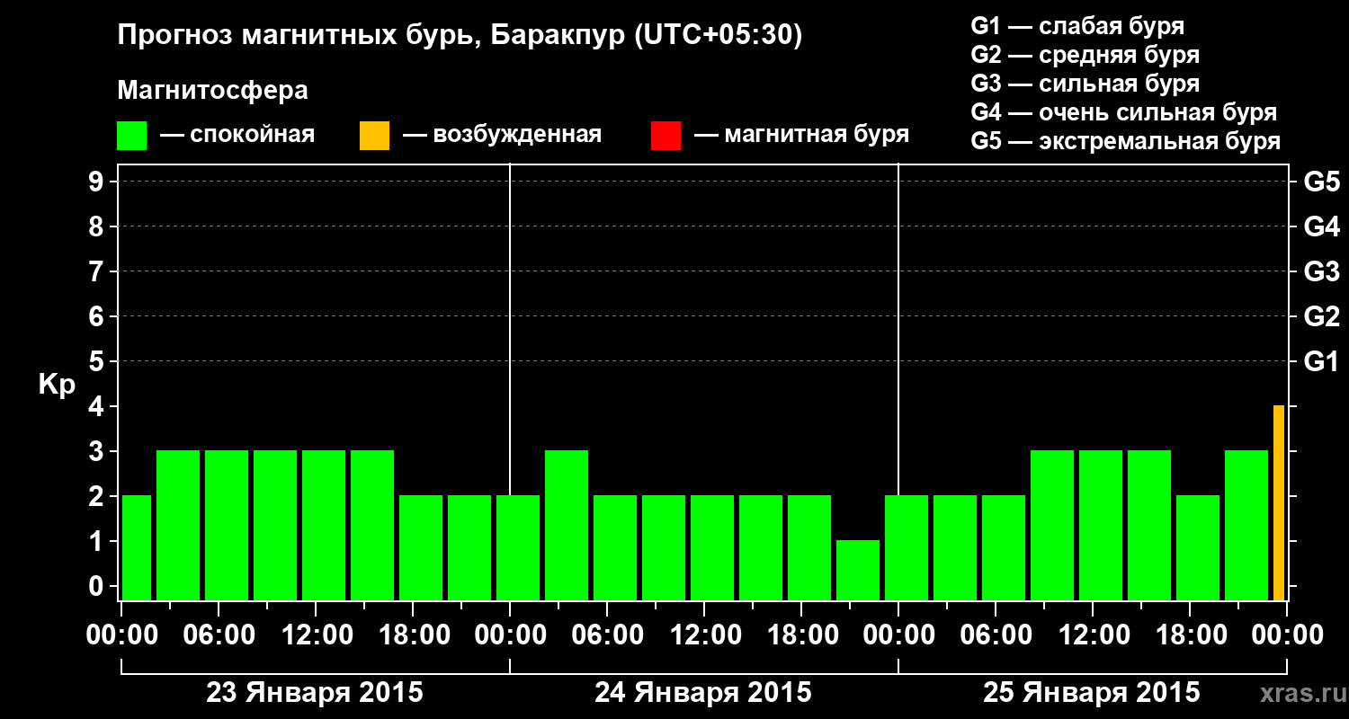 Прогноз магнитных бурь в Баракпуре — 23 января 2015 года