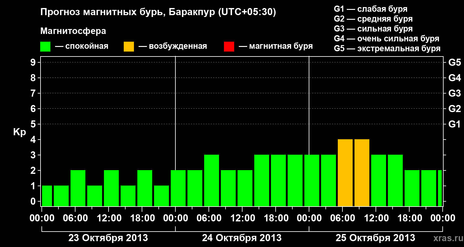 Прогноз магнитных бурь в Баракпуре — 23 октября 2013 года