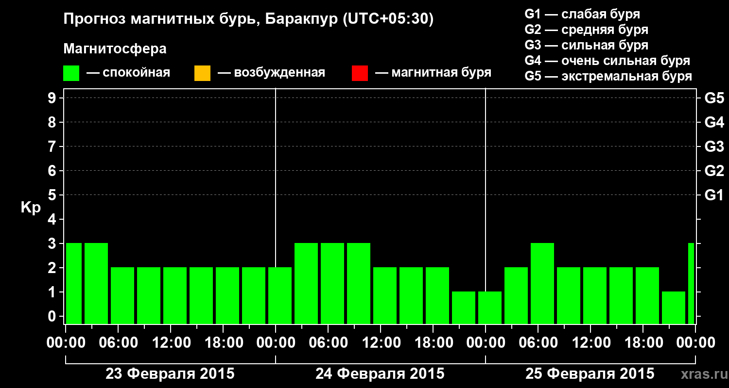 Прогноз магнитных бурь в Баракпуре — 23 февраля 2015 года