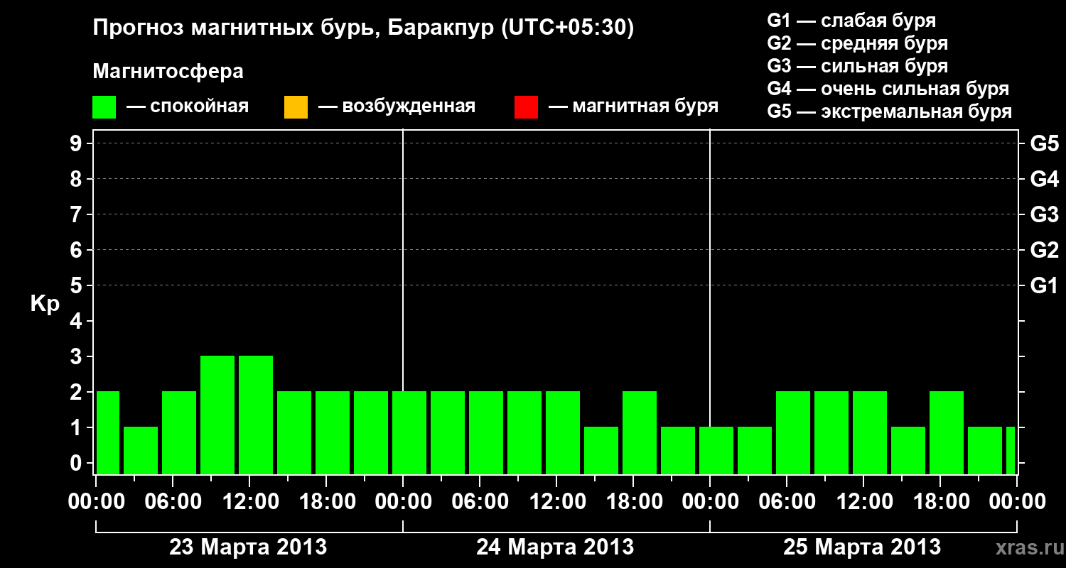 Прогноз магнитных бурь в Баракпуре — 23 марта 2013 года